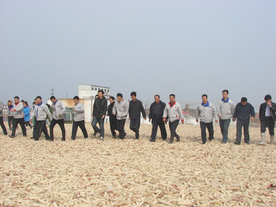而與植樹活動相對應的,在市區(qū)基地上演了一幕別具一格的勞動形式。14日下午市區(qū)基地廣大干部職工在基地經理宋才勇的帶領下,通過高達十余米的傳送帶,迎著大風攀登到了玉米芯垛頂端,十余米的高度也未能阻止很多有恐高癥的同志,尤其是女同志的腳步。他們或一字橫向成排,或一字縱向成隊,把最初上去就會陷進半個人的玉米芯垛踩了個結實。你可別小看這活,這活兒就像和面,純粹是“軟消耗”,好多同志幾個小時下來,腿都發(fā)僵不打彎了,足弓疼得厲害,眼睛也被玉米芯粉塵曝的睜不開,但他們卻高興著呢,“因為這樣一來只要在折實的原料垛上鋪上一層“舊玉米芯隔離層”,就可以有效應對春季雨水的潛在威脅,減少玉米芯的損失了”。宋經理如是說。