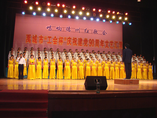 今天上午九點鐘,禹城市“工會杯”迎接建黨九十周年文藝匯演在市影劇院隆重舉行,包括我公司在內(nèi)的全市13家企事業(yè)單位參加了匯演。公司總經(jīng)理趙光輝,副總經(jīng)理秦加利親自到現(xiàn)場觀看了演出。