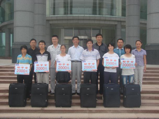 愛心助學(xué),成就夢想。8月10日上午,我集團(tuán)在工業(yè)園一號會議室舉行2011年“圓夢大學(xué)”助學(xué)金發(fā)放儀式。王星云董事長、趙光輝總經(jīng)理出席。王星云董事長親自為六名家境困難、品學(xué)兼優(yōu)的大學(xué)生每人發(fā)放助學(xué)金2000元。