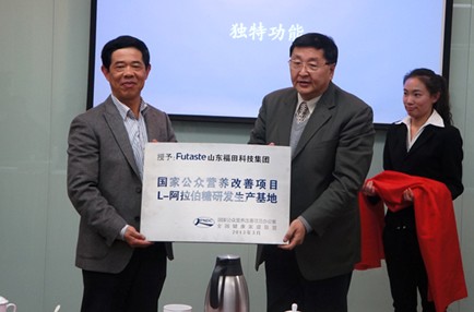 食品安全健康直接影響國民身體素質(zhì)和生活質(zhì)量,加強改善食品安全營養(yǎng)是我國政府公共職責和食品生產(chǎn)企業(yè)發(fā)展使命。在第十七屆中國國際食品添加劑和配料展(FIC2013)期間,國家公眾營養(yǎng)健康中心為山東福田科技集團福田L-阿拉伯糖產(chǎn)品頒發(fā)”國家公眾營養(yǎng)健康倡導(dǎo)產(chǎn)品”榮譽證書,同時授予福田集團”國家公眾營養(yǎng)改善項目L-阿拉伯糖研發(fā)生產(chǎn)基地”牌匾。