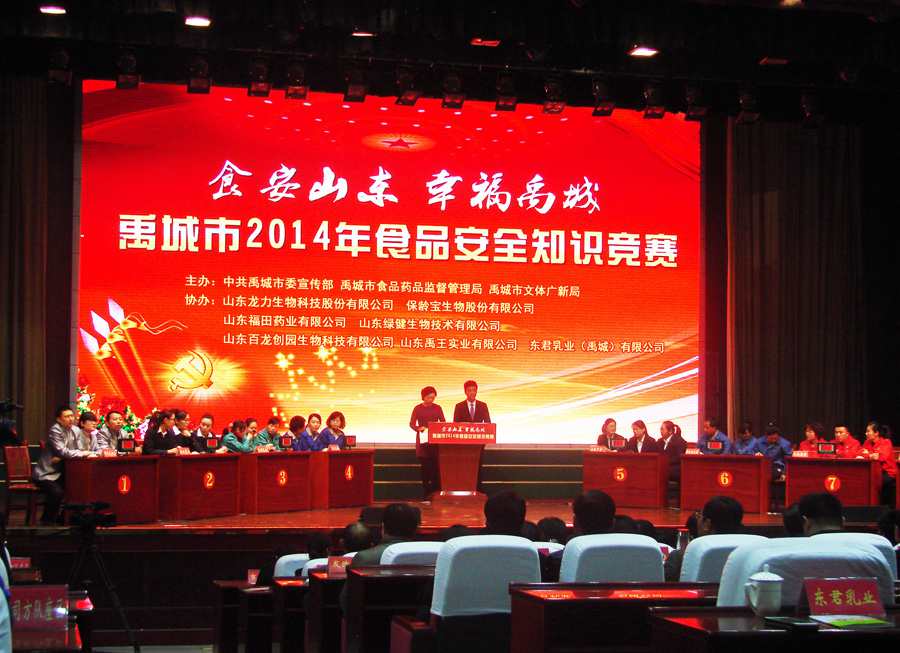 12月22日下午,禹城市2014年食品安全知識競賽決賽在禹城賓館大會議室隆重舉行。禹城市委書記、市人大常委會主任張安民,禹城市委副書記、市長張磊及德州市食品藥品監(jiān)督管理局、禹城市宣傳部等部門領(lǐng)導出席了本次比賽。經(jīng)過激烈的角逐,福田科技代表隊不負眾望,以出色的表現(xiàn)喜得桂冠。