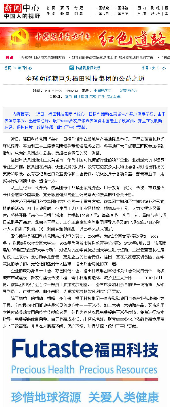 中國網(wǎng):全球功能糖巨頭福田科技的公益之道