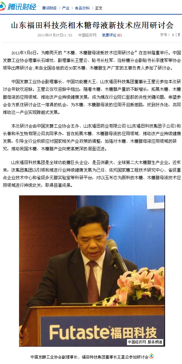 騰訊財(cái)經(jīng):我集團(tuán)亮相木糖(醇)母液新技術(shù)應(yīng)用研討會
