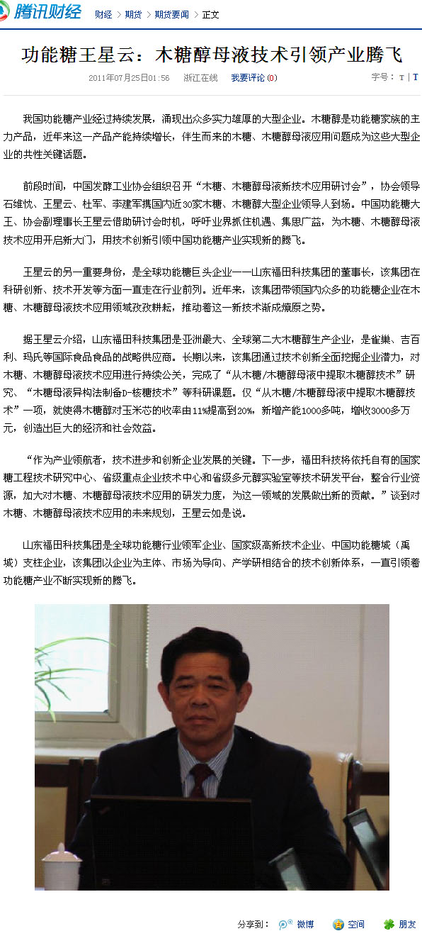 騰訊網(wǎng):功能糖王星云:木糖醇母液技術(shù)引領(lǐng)產(chǎn)業(yè)騰飛